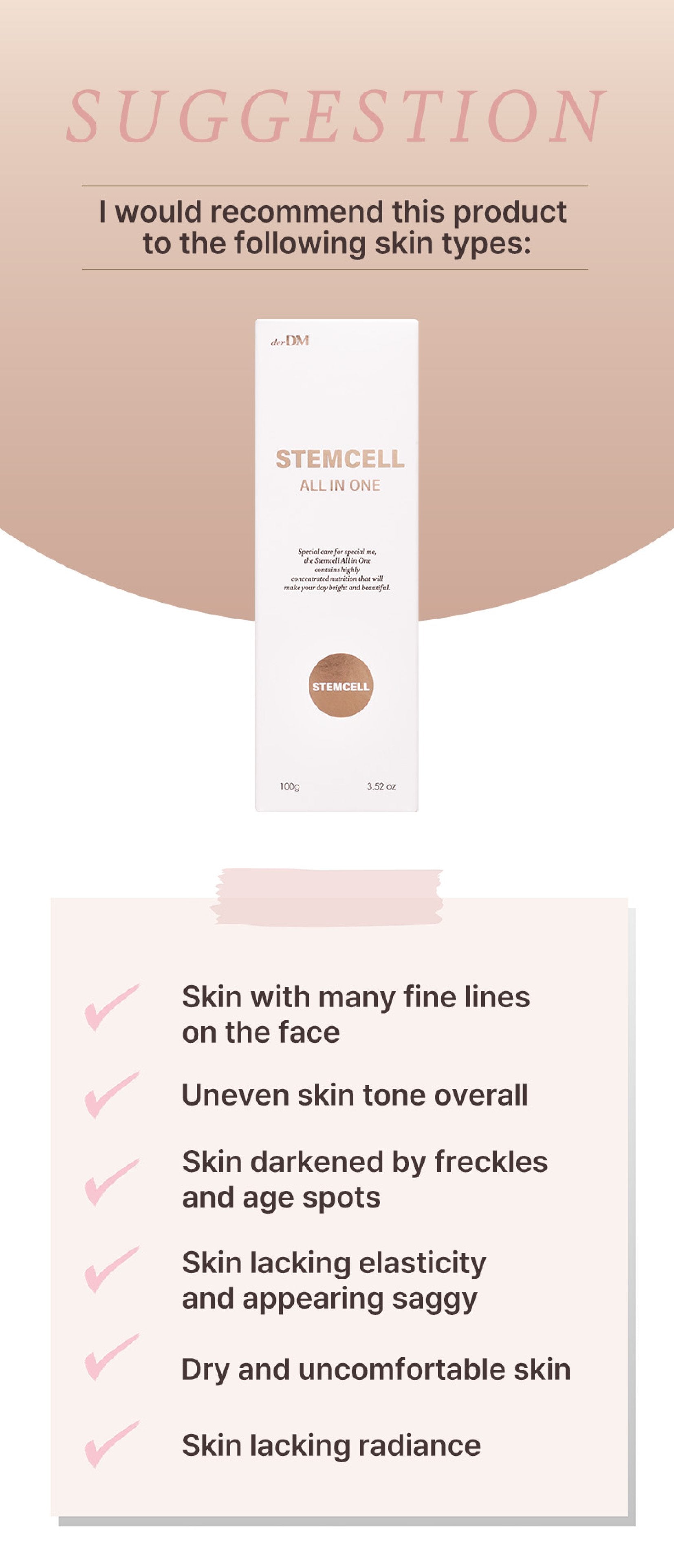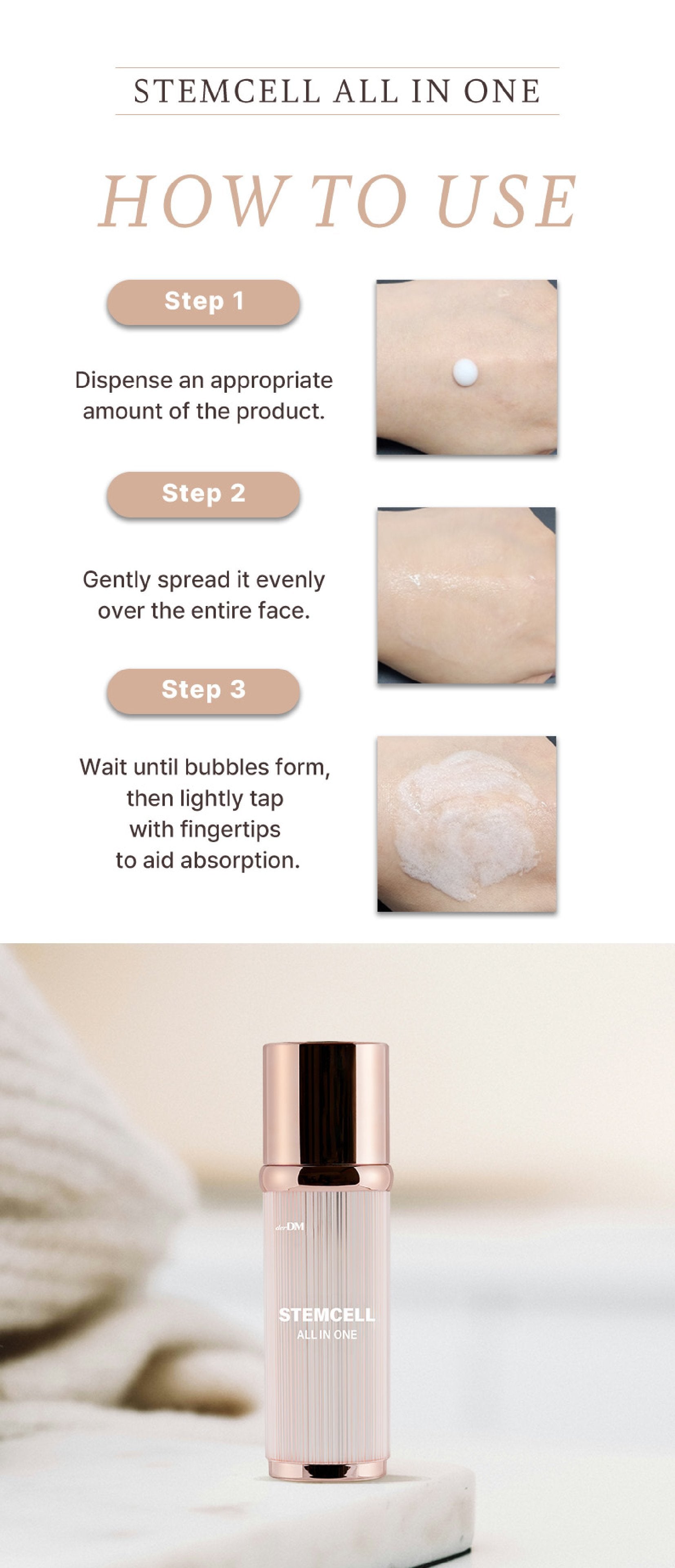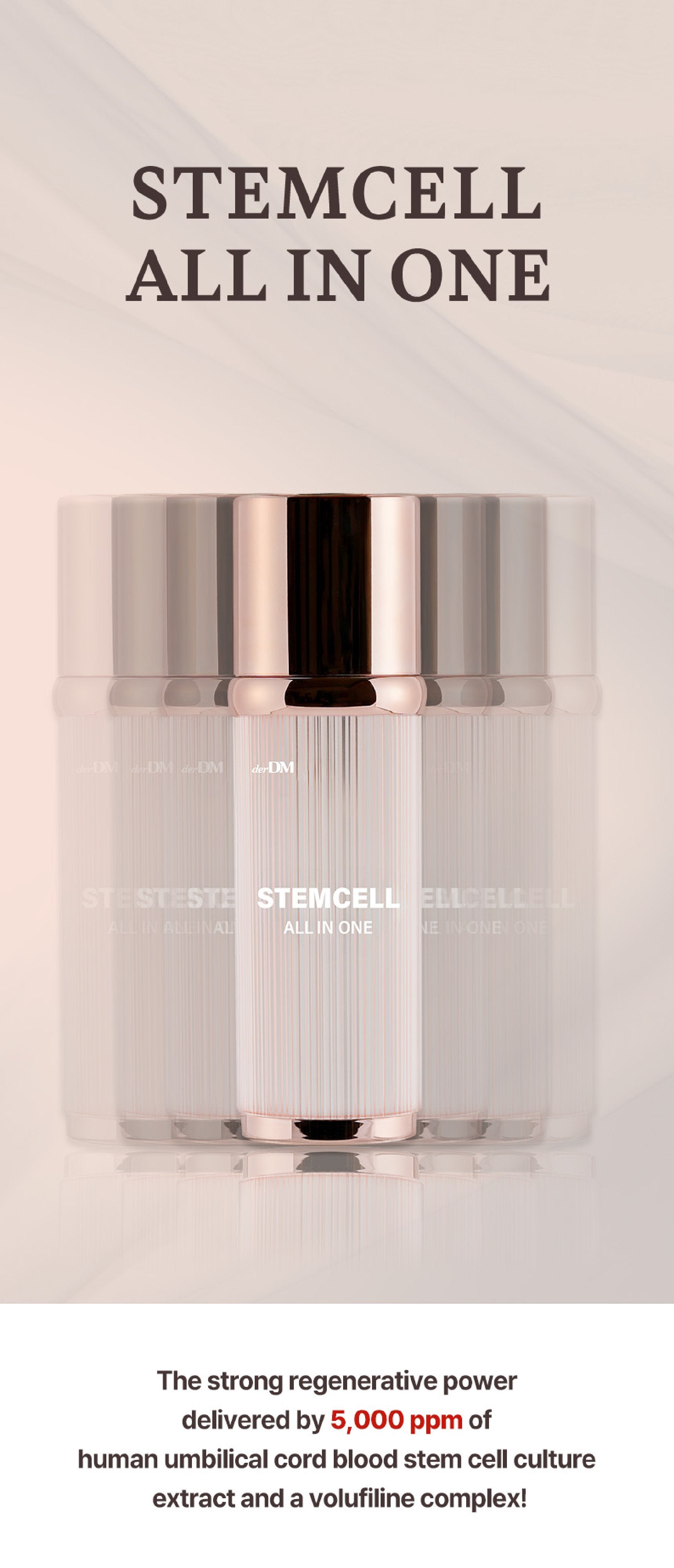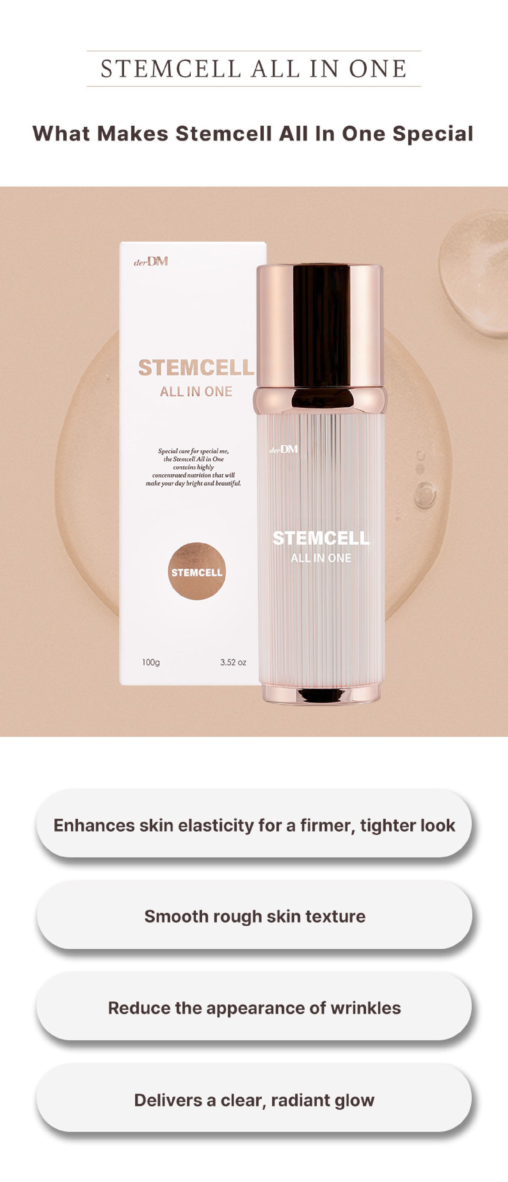 derDM Stemcell All-In-One is a premium multi-functional ampoule cream that delivers the effects of elasticity, brightening, wrinkle care, and deep hydration — all in one bottle.
