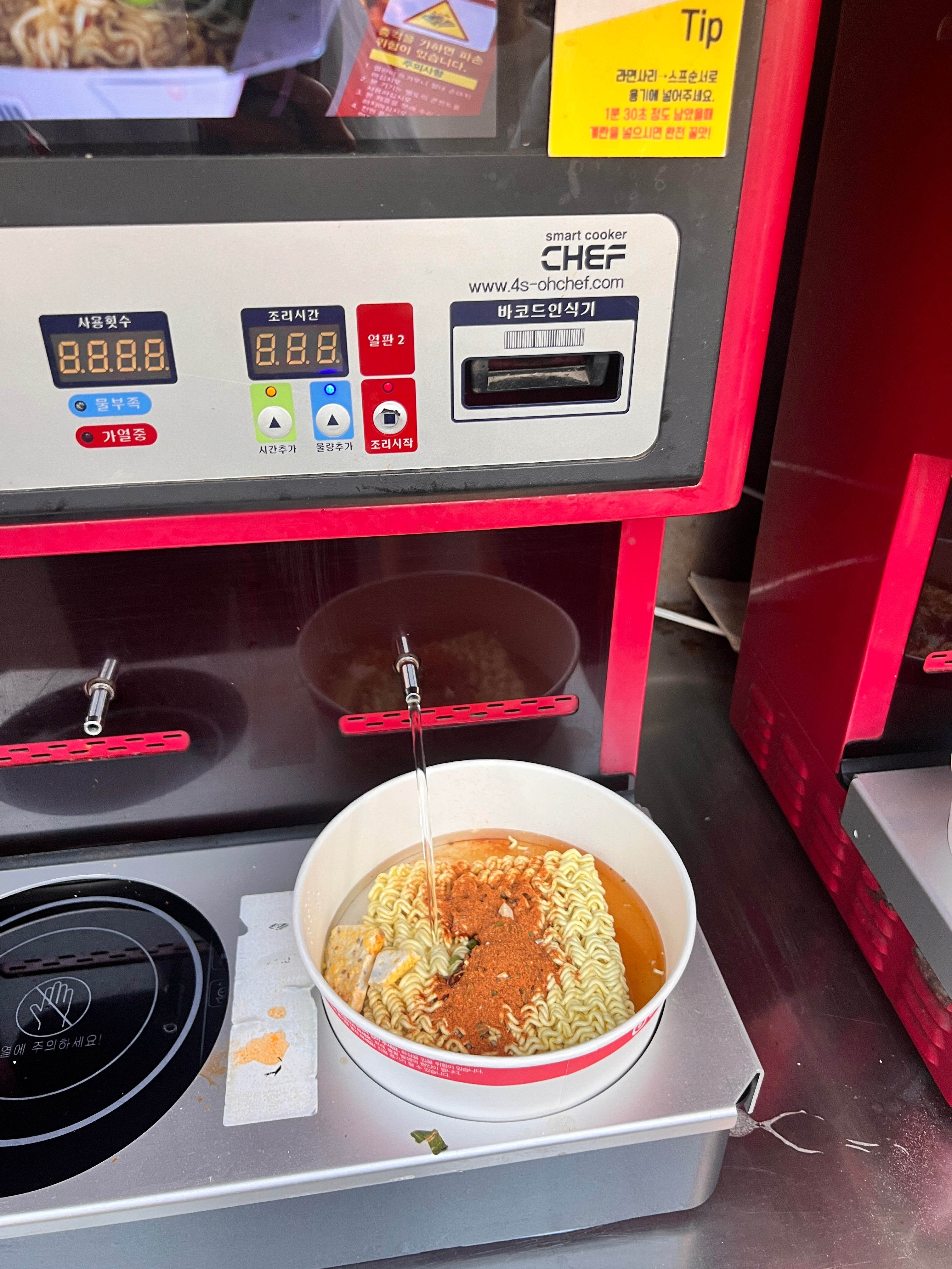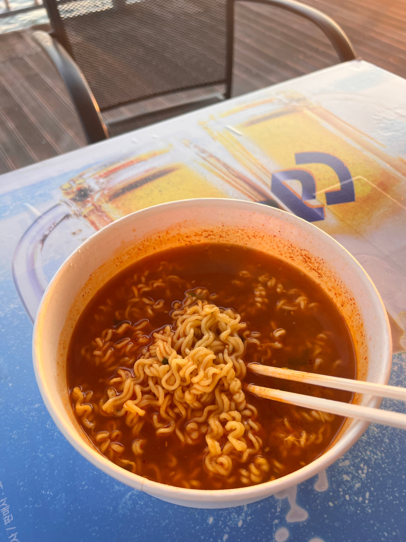 • Enjoy Korean instant noodles (ramyeon) by the riverside