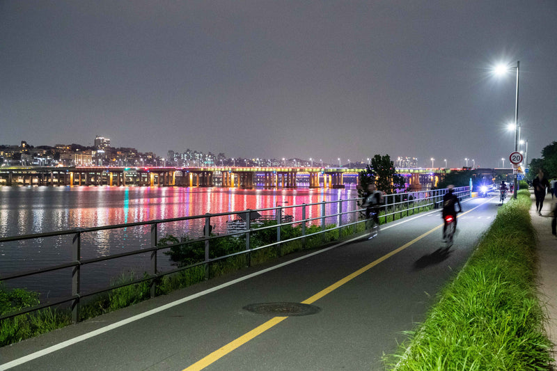 Pedal through the golden hour and experience the magical rainbow fountain show at Banpo Bridge, with a cozy ramyeon stop by the riverside.